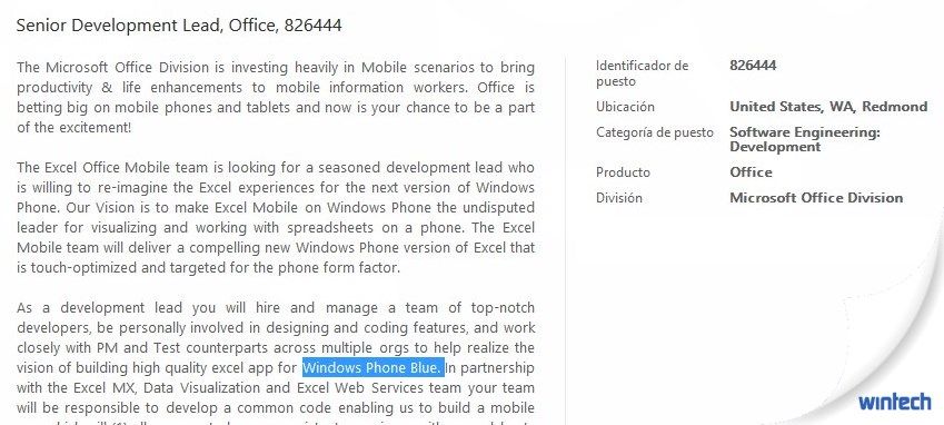 "O Windows Blue promete construir e melhorar estes aspetos do sistema operativo", era a frase que integrava o anuncio de emprego e referenciava o projeto.