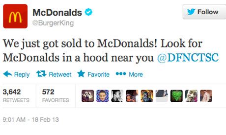Os hackers começaram por trocar o logotipo da Burger King pelo do McDonalds assim como o respetivo username, mudando também a imagem do cabeçalho para um produto da concorrência. O primeiro tweet «anormal», de uma conta que habitualmente faz apenas divulgação instituicional de ofertas e promoções, ocorreu por volta das cinco da tarde: «Acabámos de ser vendidos à McDonalds, procure um perto de si», escrevia-se.