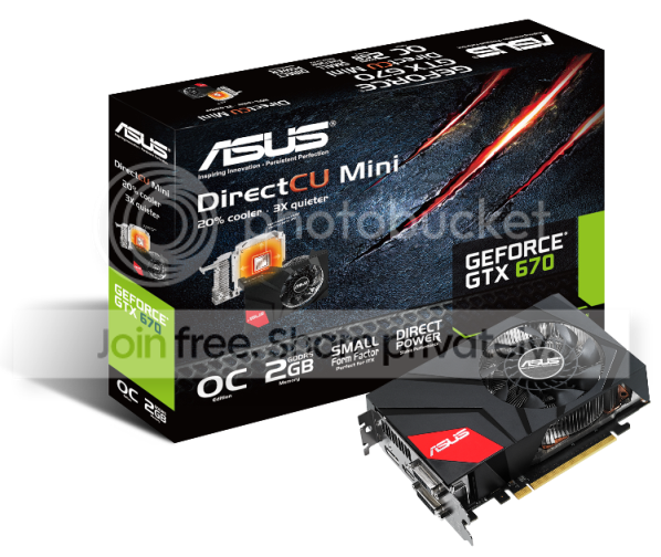 A ASUS lançou a GeForce® GTX 670 DirectCU Mini, uma placa gráfica compacta de alta desempenho projetada principalmente para sistemas SFF (small form factor) com motherboards miniITX. A placa dual-slot com apenas 17cm vem com um GPU NVIDIA® GTX 670 compatível com jogos com DirectX®11.1. A placa de referência GTX 670 mede 24.13cm.