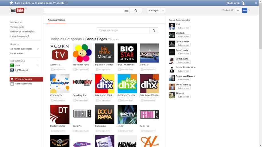 A Google revelou ontem a disponibilização do serviço de canais pagos. Este serviço estará disponível em 10 países: Austrália, Canadá, França, Japão, Coreia do Sul, Rússia, Espanha, Reino Unido e Brasil).